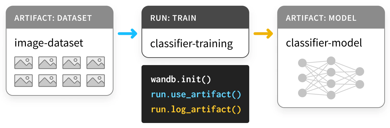 ギリシャのアンフォラのように、アーティファクトは生成されたオブジェクト、つまりプロセスの出力です。 MLでは、最も重要なアーティファクトは datasets と models です。 そして、コロナドの十字架のように、これらの重要なアーティファクトは博物館に保管されるべきです。 それは、あなたやあなたのチーム、そして広範な ML コミュニティがそれらから学べるように、カタログ化されて整理されるべきだということです。 結局のところ、トレーニングを追跡しない人々はそれを繰り返す運命にあります。 私たちの Artifacts API を使用することで、Artifact を W&B Run の出力としてログしたり、Run の入力として Artifact を使用したりできます。